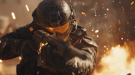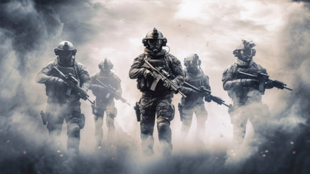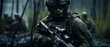 Generative AI a soldier in the foreground with a weapon in his hand