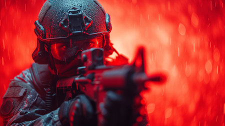 Portrait of a special forces soldier in action. Military background.