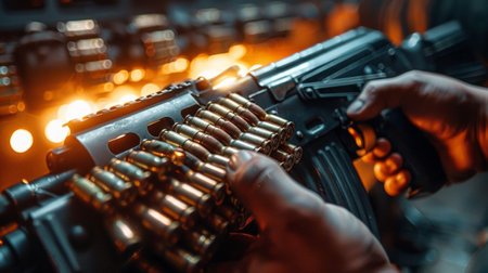 A portrait capturing the intensity as a soldier holds a powerful weapon, symbolizing strength, protection, and determination.