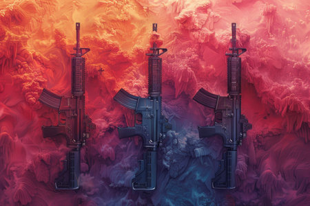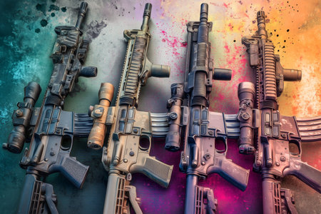 Diverse m4 rifle styles with artistic watercolor splashes a unique photography perspective