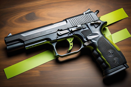 Semi-automatic handgun on a solid color background. Close-up. ai generative