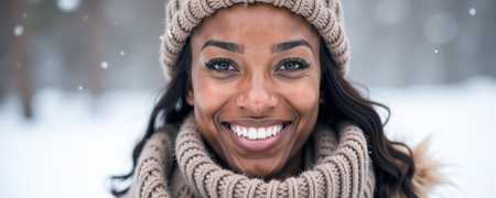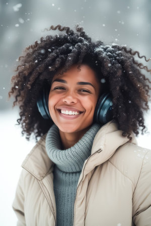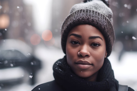 Portrait of a young african american woman in winter.
