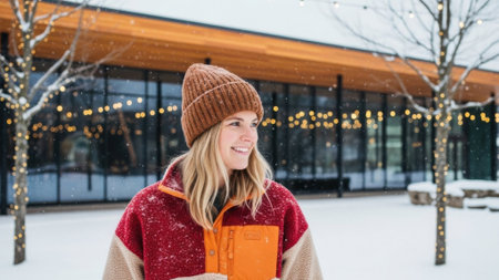 Winter Fashion: Showcase stylish winter attire, including scarves, hats, and coats. - Generative AI