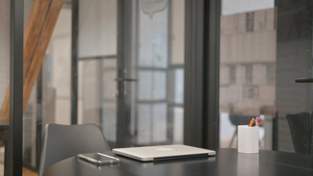 Empty Office with Open Laptop on Desk