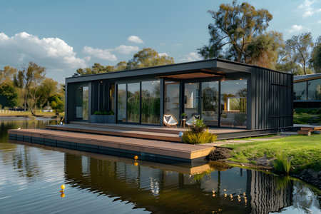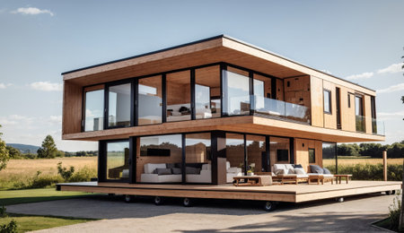 Exterior of modular luxury home. Modern small modular house.AI generated