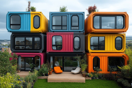 modules modular housing illustration stacked spacious, living prefab, sustainable efficient modules modular housing