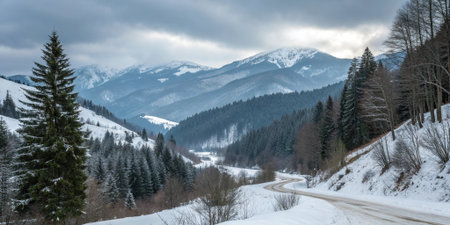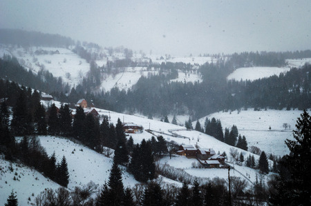 mountain landscape in winter on a cloudy day. Carpathian Mountains, Romania.