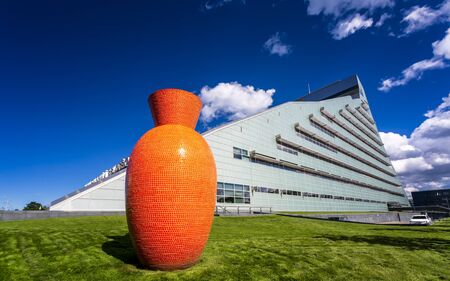 EAST LANSING, MI -22 AUGUST 2020- Modern architecture of the Eli and Edythe Broad Art Museum at Michigan State University (MSU) in East Lansing opened in 2012 and designed by architect Zaha Hadid.