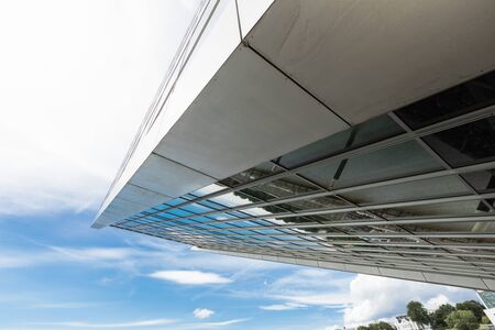 Modern architecture detail, light aluminium construction against cloudy sky