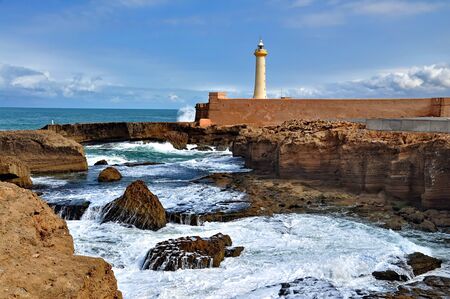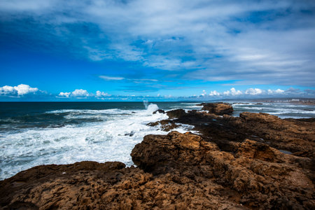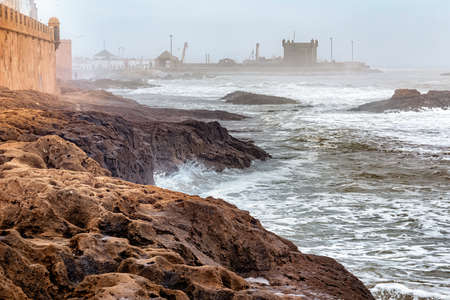 View of the stormy water of the Atlantic Ocean in the area of Essaouira in Morocco.