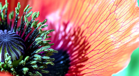 poppy flower macro close up with selective focus and shallow depth of field