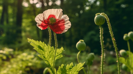 Generative AI : Wild papaver rhoeas or poppy flowers growing wild in the country