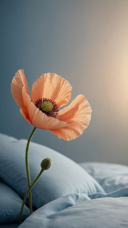 Simple still life with poppy on bed