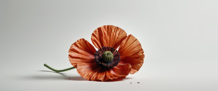 A stunning image of a bright red poppy flower, elegantly presented against a clean white background. Perfect for artistic projects or floral designs.