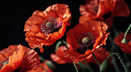 Captivating Portrait of Vibrant Red Poppy Flowers in Selective Focus --ar 3:2