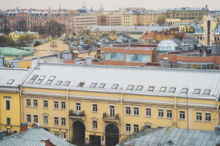 Aerial view of Griboyedov canal, roofs of historic houses in the city center. St. Petersburg, Russia.