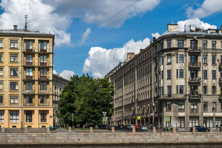 Old buildings on the Fontanka River embankment on a summer day. Saint Petersburg, Russia