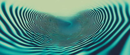 Sound waves pulsate through an abstract background creating a central focal point