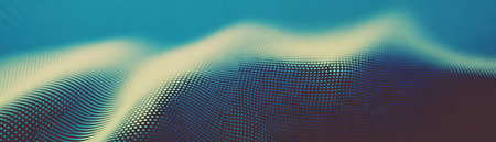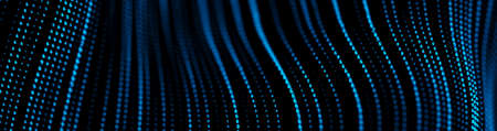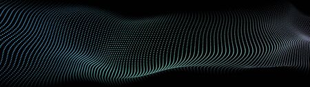 Abstract Futuristic Digital wave of particle Technology dark blurred background panorama animation 3d rendering