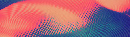 Vibrant gradient from blue/black dots to pink/magenta. Halftone pattern creates a visual depth, smooth transition