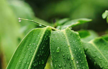 Water drop on bamboo leaves in a morning