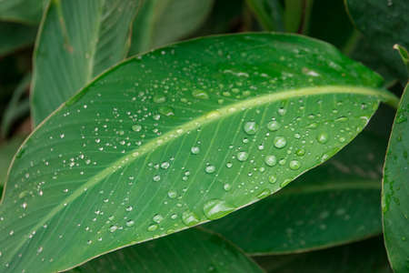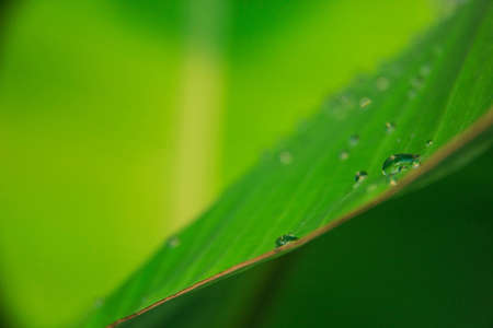 Close up of a banana tree leaf with raindrops,after raining,musa acuminata