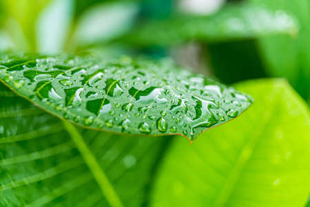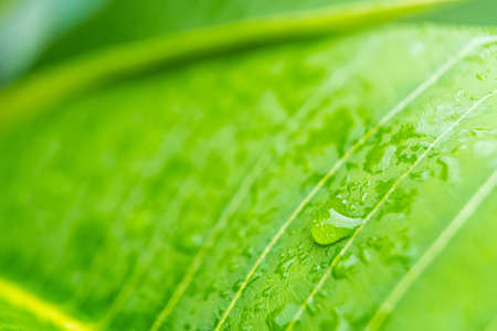 Fresh nature Close up Green leaf with water dew drop after rain.