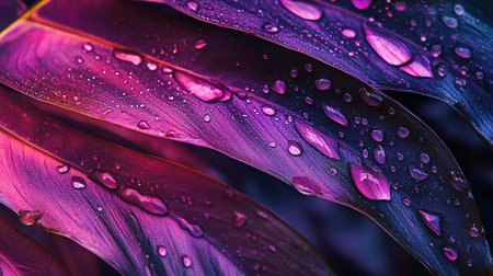 Beautiful tropical leaves with dew drops close-up macro photography