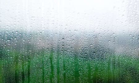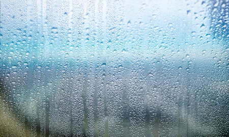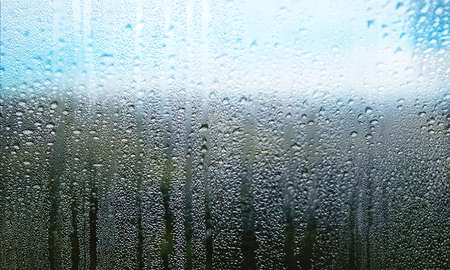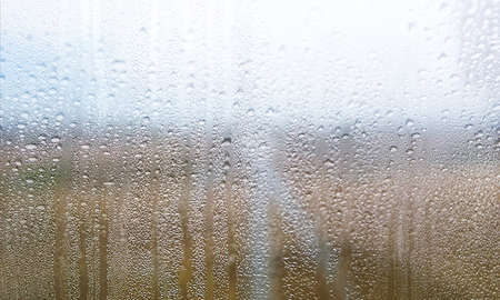 Condensation on the window. Water drops on the glass. Rainy weather.