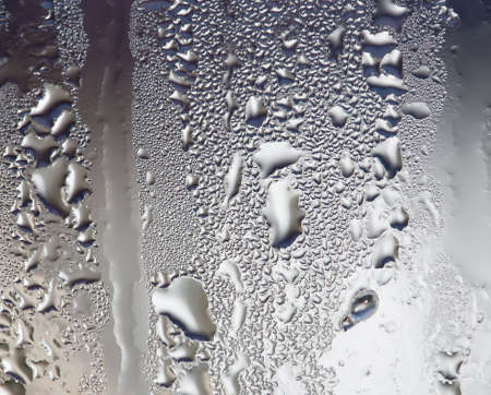 lose-up of water drops on glass surface as background color.