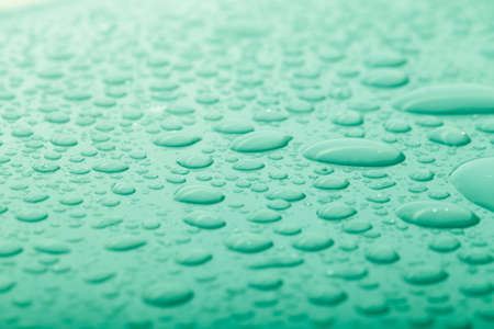 Dops of water on a color background. Green. Toned.