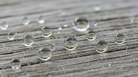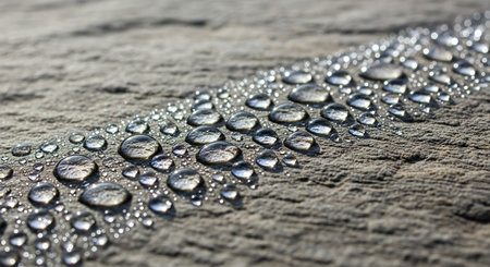 Close-up Water Beads Dance on a Hydrophobic Surface, Highlighting Texture and Contrast.
