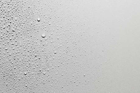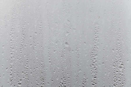 Close up water drop on gray background, misted glass with droplets of water draining down. Dripping Condensation