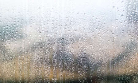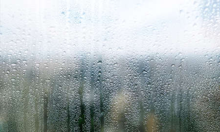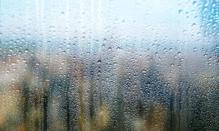 Condensation on the window. Raindrops on the glass. Rainy weather.