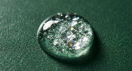 Tiny shimmering beads cling to a vivid cobalt background, creating mesmerizing reflections and a sense of freshness and clarity.