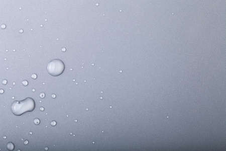 Drops of water on a color background. Gray. Shallow depth of field. Selective focus. Toned.