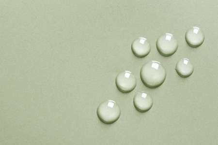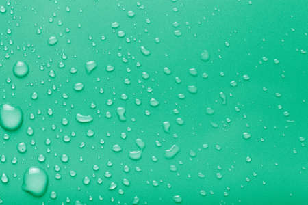 Dops of water on a color background. Green. Toned.