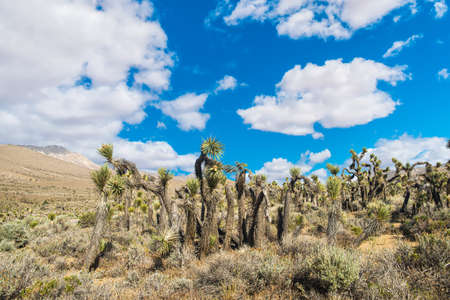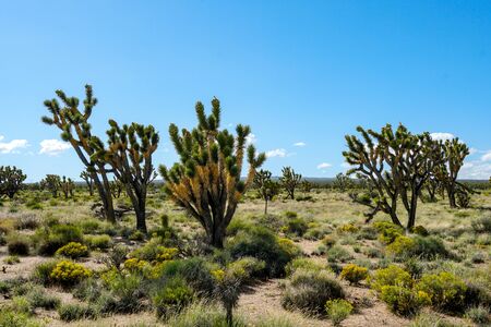 Many Joshua trees (yucca brevifolia) growing in the californian desert, USA.