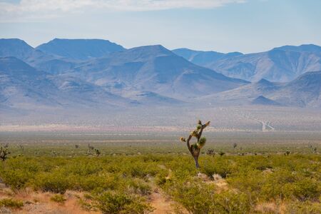 Mojave Desert Summer Scenery. Joshua Trees and Grassland. Rural Californian Place.