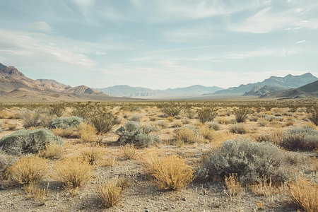 Illustration of photo of the nevada desert with muted tones , high quality, high resolution