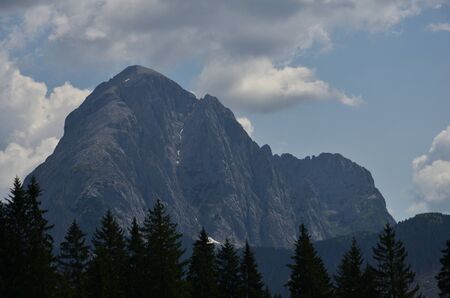 watzmann saalbach hinterglemm clouds and dramatic mood scenic. Weather was great but with dark clouds in perfect sunlight. mountainscape and landscape view of Austrian alpes, summit peak.