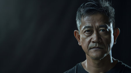 Southeast Asian man stretching while appearing relieved, showcasing a moment of comfort. Ideal for themes of relaxation, stretching, and wellness