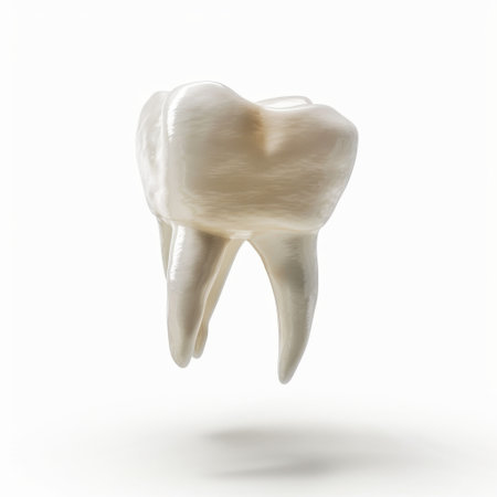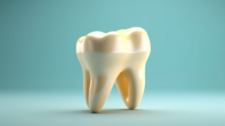 This image showcases a realistic 3D rendering of a human tooth, signifying dental health and hygiene. Ideal for health-related topics and educational purposes.
