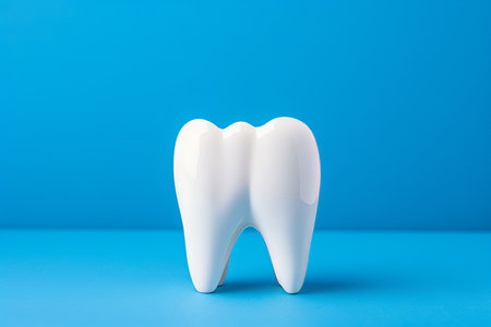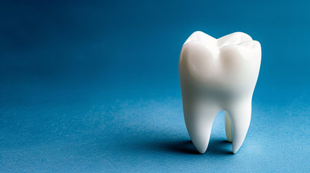 Snow white healthy tooth on blue backdrop, symbolizing good dental care practices