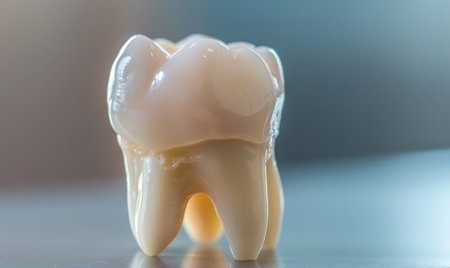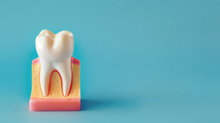 A close-up view of a realistic tooth model against a light background, ideal for dental education materials, health awareness campaigns, and oral hygiene promotion.