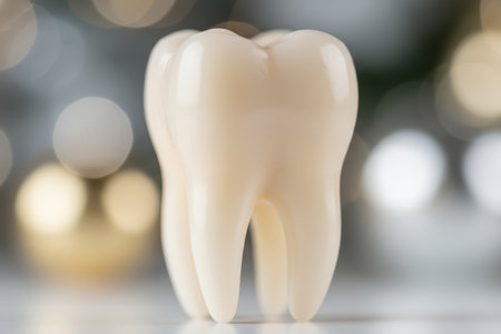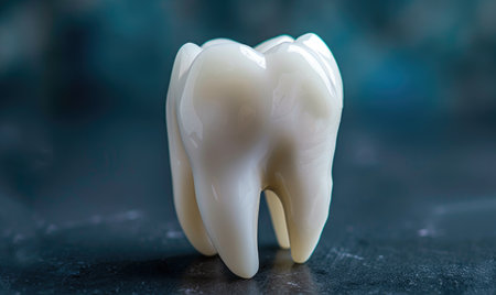 Glossy Porcelain Molar Tooth Model on a Neutral Background for Dental Education