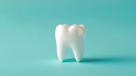 A pristine and healthy molar stands prominently on a soothing blue background, representing dental health and hygiene. This depiction emphasizes the importance of maintaining strong, white teeth, integral to good oral care practices.