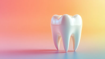 Glossy tooth model set against a soft pink background, ideal for dental health promotions and educational content. Captures attention with its modern design.