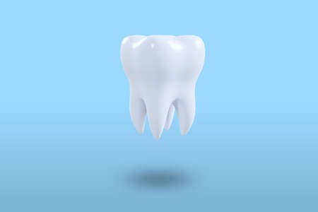 3D ing of a single human tooth isolated on a vibrant blue background for dental and medical concepts