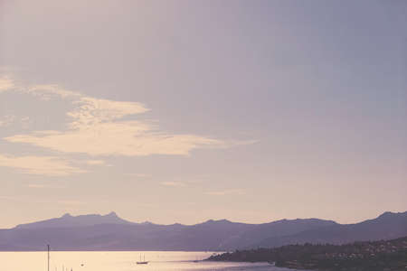 Beautiful sea view and mountains in the Mediterranean at sunset, summer vacation travel and holiday destination